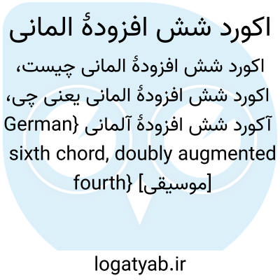 {German sixth chord, doubly augmented fourth} [موسیقی] آکورد شش افزوده ای که از بم ترین نت آن یک فاصلۀ پنجم درست یا چهارم بازافزوده به آن اضافه شود