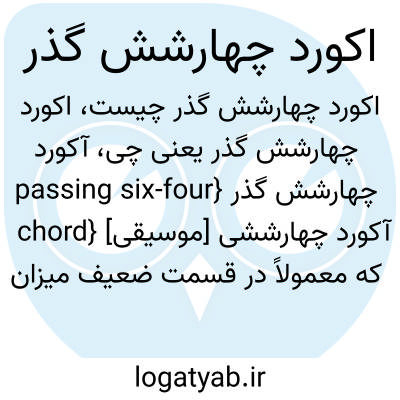 {passing six-four chord} [موسیقی] آکورد چهارششی که معمولاً در قسمت ضعیف میزان و بر روی درجات پنجم یا یکم می آید و دستِ کم بم ترین صدای آن نقش نت گذر را دارد