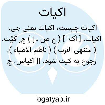 اکیات. [ اَک ْ ] ( ع ص، اِ ) ج ِ کَیِّت. ( منتهی الارب ) ( ناظم الاطباء ). رجوع به کیت شود. || اکیاس. ج ِ کَیِّس نه کِیس. و تاء بدل از سین است. ( از اقرب الموارد ). || ج ِ کات. ( ناظم الاطباء ). رجوع به کات شود.