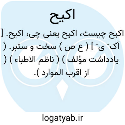 لغت نامه دهخدا اکیح. [ اَک ْ ی َ ] ( ع ص ) سخت و ستبر. ( یادداشت مؤلف ) ( ناظم الاطباء ) ( از اقرب الموارد ).