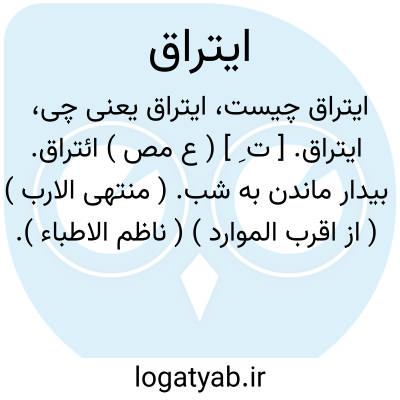 ایتراق. [ ت ِ ] ( ع مص ) ائتراق. بیدار ماندن به شب. ( منتهی الارب ) ( از اقرب الموارد ) ( ناظم الاطباء ).