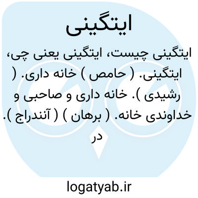 ایتگینی. ( حامص ) خانه داری. ( رشیدی ). خانه داری و صاحبی و خداوندی خانه. ( برهان ) ( آنندراج ). در فرهنگ دساتیر ( ص 234 ) ایتگینی بر وزن پیش بینی، خانه داری. ( از حاشیه برهان چ معین ). || مالکیت و تصرف و تملک حقیقی. ( ناظم الاطباء ).