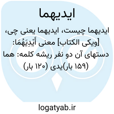 دانشنامه اسلامی [ویکی الکتاب] معنی أَیْدِیَهُمَا: دستهای آن دو نفرریشه کلمه: هما (۱۵۹ بار)یدی (۱۲۰ بار)