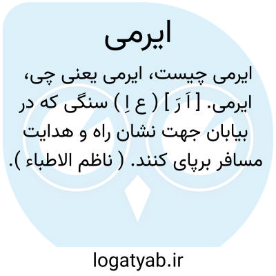 ایرمی. [ اَ رَ ] ( ع اِ ) سنگی که در بیابان جهت نشان راه و هدایت مسافر برپای کنند. ( ناظم الاطباء ).