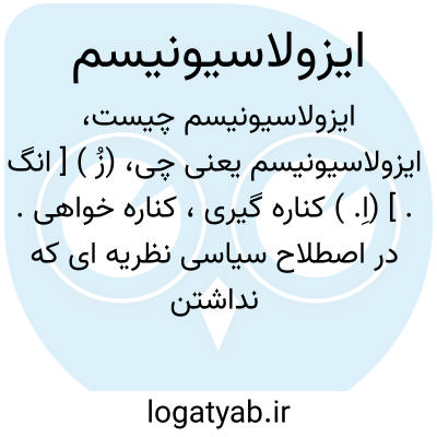 (زُ ) [ انگ. ] (اِ. ) کناره گیری، کناره خواهی. در اصطلاح سیاسی نظریه ای که نداشتن رابطة نزدیک با ملت های دیگر را راه بهتری برای حفظ منافع ملی می شمارد.