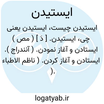 ایستیدن. [ دَ ] ( مص ) ایستادن و آغاز نمودن. ( آنندراج ). ایستادن و آغاز کردن. ( ناظم الاطباء ). ایستادن. ( فرهنگ فارسی معین ): المواکبه؛ برکاری ایستیدن. ( تاج المصادر بیهقی ). المواقفه؛ با کسی در جنگ بایستیدن و با کسی در چیزی فروایستیدن در معاملتی. ( تاج المصادر بیهقی ).