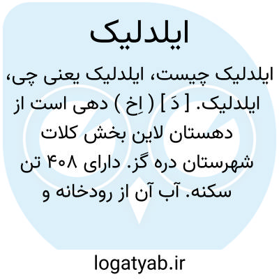 ایلدلیک. [ دَ ] ( اِخ ) دهی است از دهستان لاین بخش کلات شهرستان دره گز. دارای 408 تن سکنه. آب آن از رودخانه و محصول آن غلات و سیب زمینی است. ( از فرهنگ جغرافیایی ایران ج 9 ).