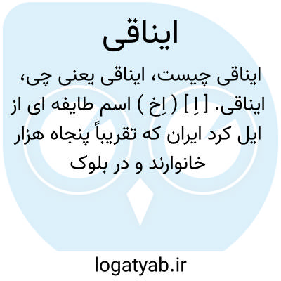 ایناقی. [ اِ ] ( اِخ ) اسم طایفه ای از ایل کرد ایران که تقریباً پنجاه هزار خانوارند و در بلوک جوانروز ییلاق کوه شاهو و قشلاق سوخیل مسکن دارند و به اسم اعلی جد خود ایناق بیک مشهورند. ( جغرافیای سیاسی کیهان ص 58 ).