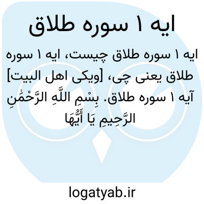 [ویکی اهل البیت] آیه 1 سوره طلاق. بِسْمِ اللَّهِ الرَّحْمَٰنِ الرَّحِیمِ یَا أَیُّهَا النَّبِیُّ إِذَا طَلَّقْتُمُ النِّسَاءَ فَطَلِّقُوهُنَّ لِعِدَّتِهِنَّ وَأَحْصُوا الْعِدَّةَ ۖ وَاتَّقُوا اللَّهَ رَبَّکُمْ ۖ لَا تُخْرِجُوهُنَّ مِنْ بُیُوتِهِنَّ وَلَا یَخْرُجْنَ إِلَّا أَنْ یَأْتِینَ بِفَاحِشَةٍ مُبَیِّنَةٍ ۚ وَتِلْکَ حُدُودُ اللَّهِ ۚ وَمَنْ یَتَعَدَّ حُدُودَ اللَّهِ فَقَدْ ظَلَمَ نَفْسَهُ ۚ لَا تَدْرِی لَعَلَّ اللَّهَ یُحْدِثُ بَعْدَ ذَٰلِکَ أَمْرًا