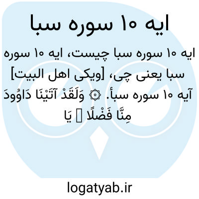 [ویکی اهل البیت] آیه 10 سوره سبا. ۞ وَلَقَدْ آتَیْنَا دَاوُودَ مِنَّا فَضْلًا ۖ یَا جِبَالُ أَوِّبِی مَعَهُ وَالطَّیْرَ ۖ وَأَلَنَّا لَهُ الْحَدِیدَ