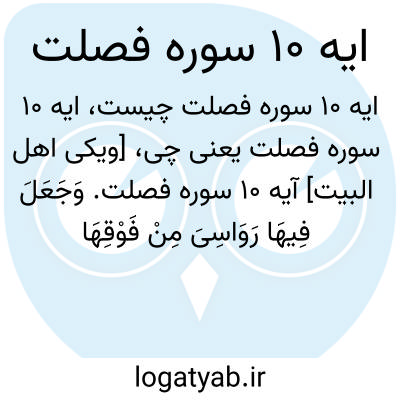 [ویکی اهل البیت] آیه 10 سوره فصلت. وَجَعَلَ فِیهَا رَوَاسِیَ مِنْ فَوْقِهَا وَبَارَکَ فِیهَا وَقَدَّرَ فِیهَا أَقْوَاتَهَا فِی أَرْبَعَةِ أَیَّامٍ سَوَاءً لِلسَّائِلِینَ