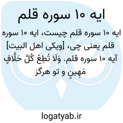 [ویکی اهل البیت] آیه 10 سوره قلم. وَلَا تُطِعْ کُلَّ حَلَّافٍ مَهِینٍ