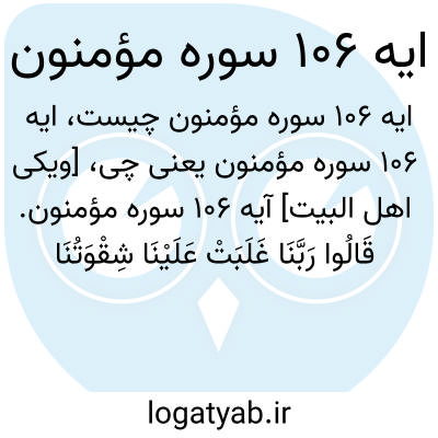 [ویکی اهل البیت] آیه 106 سوره مؤمنون. قَالُوا رَبَّنَا غَلَبَتْ عَلَیْنَا شِقْوَتُنَا وَکُنَّا قَوْمًا ضَالِّینَ
