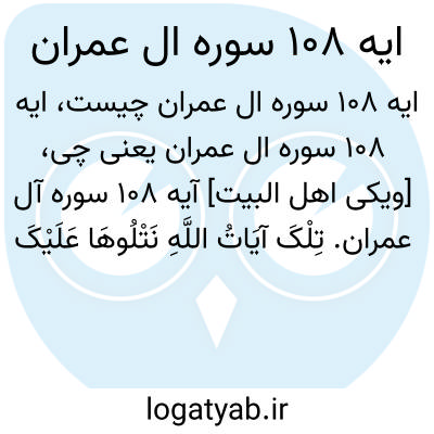 [ویکی اهل البیت] آیه 108 سوره آل عمران. تِلْکَ آیَاتُ اللَّهِ نَتْلُوهَا عَلَیْکَ بِالْحَقِّ ۗ وَمَا اللَّهُ یُرِیدُ ظُلْمًا لِلْعَالَمِینَ