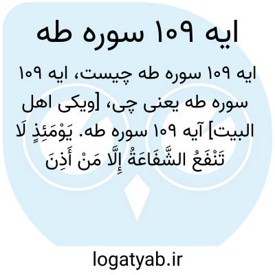[ویکی اهل البیت] آیه 109 سوره طه. یَوْمَئِذٍ لَا تَنْفَعُ الشَّفَاعَةُ إِلَّا مَنْ أَذِنَ لَهُ الرَّحْمَٰنُ وَرَضِیَ لَهُ قَوْلًا