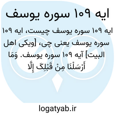 [ویکی اهل البیت] آیه 109 سوره یوسف. وَمَا أَرْسَلْنَا مِنْ قَبْلِکَ إِلَّا رِجَالًا نُوحِی إِلَیْهِمْ مِنْ أَهْلِ الْقُرَیٰ ۗ أَفَلَمْ یَسِیرُوا فِی الْأَرْضِ فَیَنْظُرُوا کَیْفَ کَانَ عَاقِبَةُ الَّذِینَ مِنْ قَبْلِهِمْ ۗ وَلَدَارُ الْآخِرَةِ خَیْرٌ لِلَّذِینَ اتَّقَوْا ۗ أَفَلَا تَعْقِلُونَ