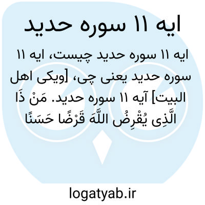 [ویکی اهل البیت] آیه 11 سوره حدید. مَنْ ذَا الَّذِی یُقْرِضُ اللَّهَ قَرْضًا حَسَنًا فَیُضَاعِفَهُ لَهُ وَلَهُ أَجْرٌ کَرِیمٌ