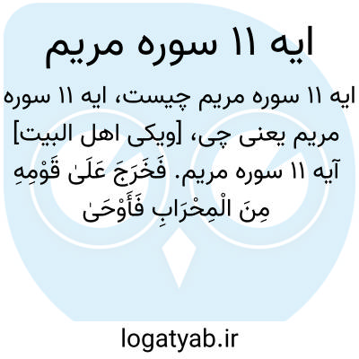 [ویکی اهل البیت] آیه 11 سوره مریم. فَخَرَجَ عَلَیٰ قَوْمِهِ مِنَ الْمِحْرَابِ فَأَوْحَیٰ إِلَیْهِمْ أَنْ سَبِّحُوا بُکْرَةً وَعَشِیًّا