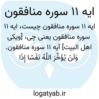 [ویکی اهل البیت] آیه 11 سوره منافقون. وَلَنْ یُؤَخِّرَ اللَّهُ نَفْسًا إِذَا جَاءَ أَجَلُهَا ۚ وَاللَّهُ خَبِیرٌ بِمَا تَعْمَلُونَ