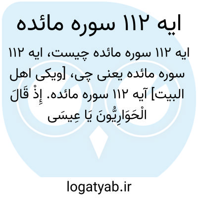 [ویکی اهل البیت] آیه 112 سوره مائده. إِذْ قَالَ الْحَوَارِیُّونَ یَا عِیسَی ابْنَ مَرْیَمَ هَلْ یَسْتَطِیعُ رَبُّکَ أَنْ یُنَزِّلَ عَلَیْنَا مَائِدَةً مِنَ السَّمَاءِ ۖ قَالَ اتَّقُوا اللَّهَ إِنْ کُنْتُمْ مُؤْمِنِینَ