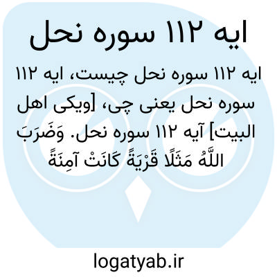 [ویکی اهل البیت] آیه 112 سوره نحل. وَضَرَبَ اللَّهُ مَثَلًا قَرْیَةً کَانَتْ آمِنَةً مُطْمَئِنَّةً یَأْتِیهَا رِزْقُهَا رَغَدًا مِنْ کُلِّ مَکَانٍ فَکَفَرَتْ بِأَنْعُمِ اللَّهِ فَأَذَاقَهَا اللَّهُ لِبَاسَ الْجُوعِ وَالْخَوْفِ بِمَا کَانُوا یَصْنَعُونَ