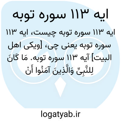 [ویکی اهل البیت] آیه 113 سوره توبه. مَا کَانَ لِلنَّبِیِّ وَالَّذِینَ آمَنُوا أَنْ یَسْتَغْفِرُوا لِلْمُشْرِکِینَ وَلَوْ کَانُوا أُولِی قُرْبَیٰ مِنْ بَعْدِ مَا تَبَیَّنَ لَهُمْ أَنَّهُمْ أَصْحَابُ الْجَحِیمِ