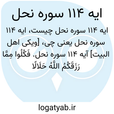[ویکی اهل البیت] آیه 114 سوره نحل. فَکُلُوا مِمَّا رَزَقَکُمُ اللَّهُ حَلَالًا طَیِّبًا وَاشْکُرُوا نِعْمَتَ اللَّهِ إِنْ کُنْتُمْ إِیَّاهُ تَعْبُدُونَ