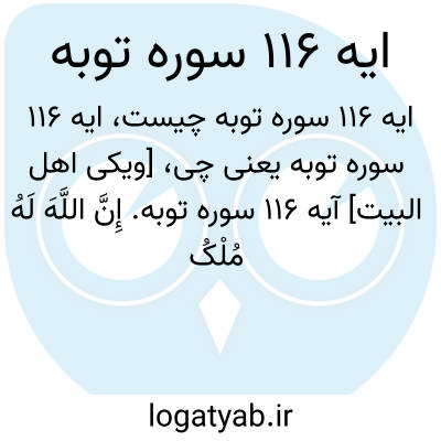 [ویکی اهل البیت] آیه 116 سوره توبه. إِنَّ اللَّهَ لَهُ مُلْکُ السَّمَاوَاتِ وَالْأَرْضِ ۖ یُحْیِی وَیُمِیتُ ۚ وَمَا لَکُمْ مِنْ دُونِ اللَّهِ مِنْ وَلِیٍّ وَلَا نَصِیرٍ