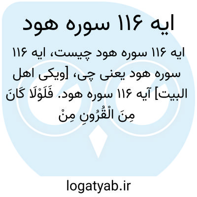 [ویکی اهل البیت] آیه 116 سوره هود. فَلَوْلَا کَانَ مِنَ الْقُرُونِ مِنْ قَبْلِکُمْ أُولُو بَقِیَّةٍ یَنْهَوْنَ عَنِ الْفَسَادِ فِی الْأَرْضِ إِلَّا قَلِیلًا مِمَّنْ أَنْجَیْنَا مِنْهُمْ ۗ وَاتَّبَعَ الَّذِینَ ظَلَمُوا مَا أُتْرِفُوا فِیهِ وَکَانُوا مُجْرِمِینَ