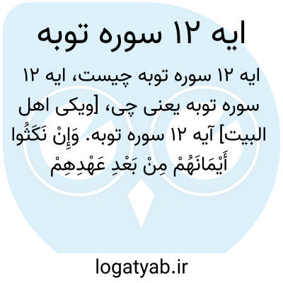 [ویکی اهل البیت] آیه 12 سوره توبه. وَإِنْ نَکَثُوا أَیْمَانَهُمْ مِنْ بَعْدِ عَهْدِهِمْ وَطَعَنُوا فِی دِینِکُمْ فَقَاتِلُوا أَئِمَّةَ الْکُفْرِ ۙ إِنَّهُمْ لَا أَیْمَانَ لَهُمْ لَعَلَّهُمْ یَنْتَهُونَ