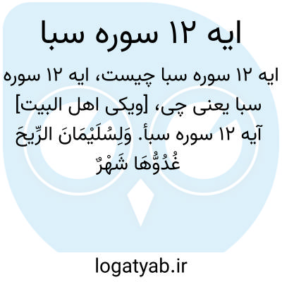 [ویکی اهل البیت] آیه 12 سوره سبا. وَلِسُلَیْمَانَ الرِّیحَ غُدُوُّهَا شَهْرٌ وَرَوَاحُهَا شَهْرٌ ۖ وَأَسَلْنَا لَهُ عَیْنَ الْقِطْرِ ۖ وَمِنَ الْجِنِّ مَنْ یَعْمَلُ بَیْنَ یَدَیْهِ بِإِذْنِ رَبِّهِ ۖ وَمَنْ یَزِغْ مِنْهُمْ عَنْ أَمْرِنَا نُذِقْهُ مِنْ عَذَابِ السَّعِیرِ