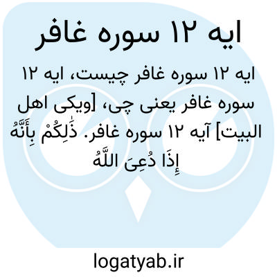 [ویکی اهل البیت] آیه 12 سوره غافر. ذَٰلِکُمْ بِأَنَّهُ إِذَا دُعِیَ اللَّهُ وَحْدَهُ کَفَرْتُمْ ۖ وَإِنْ یُشْرَکْ بِهِ تُؤْمِنُوا ۚ فَالْحُکْمُ لِلَّهِ الْعَلِیِّ الْکَبِیرِ