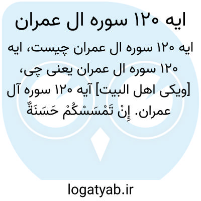 [ویکی اهل البیت] آیه 120 سوره آل عمران. إِنْ تَمْسَسْکُمْ حَسَنَةٌ تَسُؤْهُمْ وَإِنْ تُصِبْکُمْ سَیِّئَةٌ یَفْرَحُوا بِهَا ۖ وَإِنْ تَصْبِرُوا وَتَتَّقُوا لَا یَضُرُّکُمْ کَیْدُهُمْ شَیْئًا ۗ إِنَّ اللَّهَ بِمَا یَعْمَلُونَ مُحِیطٌ