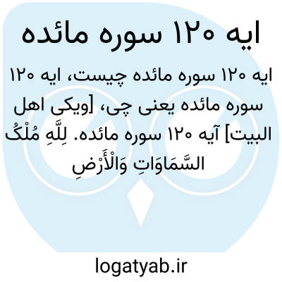 [ویکی اهل البیت] آیه 120 سوره مائده. لِلَّهِ مُلْکُ السَّمَاوَاتِ وَالْأَرْضِ وَمَا فِیهِنَّ ۚ وَهُوَ عَلَیٰ کُلِّ شَیْءٍ قَدِیرٌ