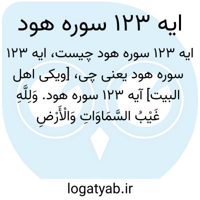 [ویکی اهل البیت] آیه 123 سوره هود. وَلِلَّهِ غَیْبُ السَّمَاوَاتِ وَالْأَرْضِ وَإِلَیْهِ یُرْجَعُ الْأَمْرُ کُلُّهُ فَاعْبُدْهُ وَتَوَکَّلْ عَلَیْهِ ۚ وَمَا رَبُّکَ بِغَافِلٍ عَمَّا تَعْمَلُونَ