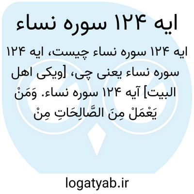 [ویکی اهل البیت] آیه 124 سوره نساء. وَمَنْ یَعْمَلْ مِنَ الصَّالِحَاتِ مِنْ ذَکَرٍ أَوْ أُنْثَیٰ وَهُوَ مُؤْمِنٌ فَأُولَٰئِکَ یَدْخُلُونَ الْجَنَّةَ وَلَا یُظْلَمُونَ نَقِیرًا