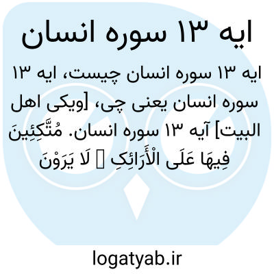 [ویکی اهل البیت] آیه 13 سوره انسان. مُتَّکِئِینَ فِیهَا عَلَی الْأَرَائِکِ ۖ لَا یَرَوْنَ فِیهَا شَمْسًا وَلَا زَمْهَرِیرًا