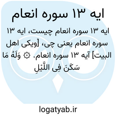 [ویکی اهل البیت] آیه 13 سوره انعام. ۞ وَلَهُ مَا سَکَنَ فِی اللَّیْلِ وَالنَّهَارِ ۚ وَهُوَ السَّمِیعُ الْعَلِیمُ