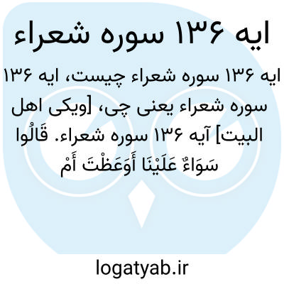 [ویکی اهل البیت] آیه 136 سوره شعراء. قَالُوا سَوَاءٌ عَلَیْنَا أَوَعَظْتَ أَمْ لَمْ تَکُنْ مِنَ الْوَاعِظِینَ