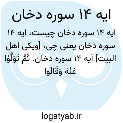 [ویکی اهل البیت] آیه 14 سوره دخان. ثُمَّ تَوَلَّوْا عَنْهُ وَقَالُوا مُعَلَّمٌ مَجْنُونٌ