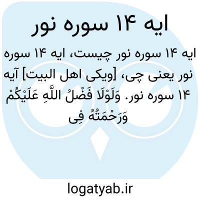 [ویکی اهل البیت] آیه 14 سوره نور. وَلَوْلَا فَضْلُ اللَّهِ عَلَیْکُمْ وَرَحْمَتُهُ فِی الدُّنْیَا وَالْآخِرَةِ لَمَسَّکُمْ فِی مَا أَفَضْتُمْ فِیهِ عَذَابٌ عَظِیمٌ