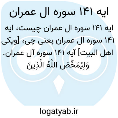 [ویکی اهل البیت] آیه 141 سوره آل عمران. وَلِیُمَحِّصَ اللَّهُ الَّذِینَ آمَنُوا وَیَمْحَقَ الْکَافِرِینَ