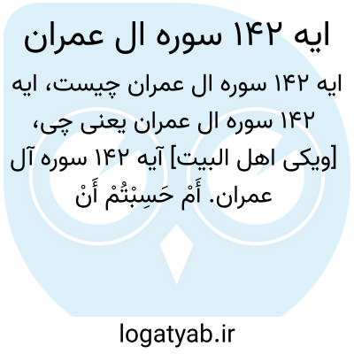 [ویکی اهل البیت] آیه 142 سوره آل عمران. أَمْ حَسِبْتُمْ أَنْ تَدْخُلُوا الْجَنَّةَ وَلَمَّا یَعْلَمِ اللَّهُ الَّذِینَ جَاهَدُوا مِنْکُمْ وَیَعْلَمَ الصَّابِرِینَ