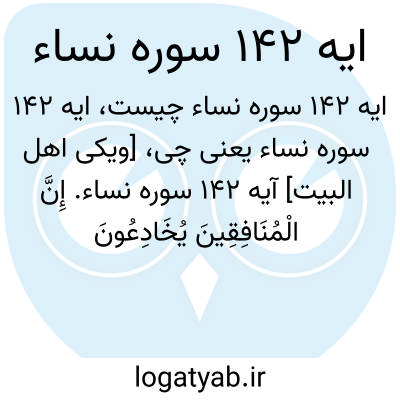 [ویکی اهل البیت] آیه 142 سوره نساء. إِنَّ الْمُنَافِقِینَ یُخَادِعُونَ اللَّهَ وَهُوَ خَادِعُهُمْ وَإِذَا قَامُوا إِلَی الصَّلَاةِ قَامُوا کُسَالَیٰ یُرَاءُونَ النَّاسَ وَلَا یَذْکُرُونَ اللَّهَ إِلَّا قَلِیلًا
