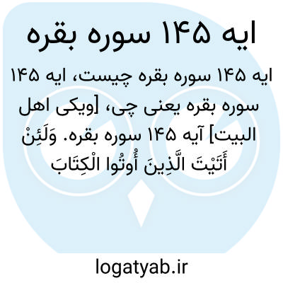 [ویکی اهل البیت] آیه 145 سوره بقره. وَلَئِنْ أَتَیْتَ الَّذِینَ أُوتُوا الْکِتَابَ بِکُلِّ آیَةٍ مَا تَبِعُوا قِبْلَتَکَ ۚ وَمَا أَنْتَ بِتَابِعٍ قِبْلَتَهُمْ ۚ وَمَا بَعْضُهُمْ بِتَابِعٍ قِبْلَةَ بَعْضٍ ۚ وَلَئِنِ اتَّبَعْتَ أَهْوَاءَهُمْ مِنْ بَعْدِ مَا جَاءَکَ مِنَ الْعِلْمِ ۙ إِنَّکَ إِذًا لَمِنَ الظَّالِمِینَ