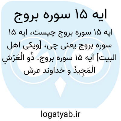 دانشنامه اسلامی [ویکی اهل البیت] آیه 15 سوره بروج. ذُو الْعَرْشِ الْمَجِیدُو خداوند عرش (عظیم) و هم با اقتدار و عزت است.صاحب عرش و ارجمند است. ….صاحب عرش و دارای مجد و عظمت است،Honorable Owner of the Throne,Lord of the Throne of Glory,