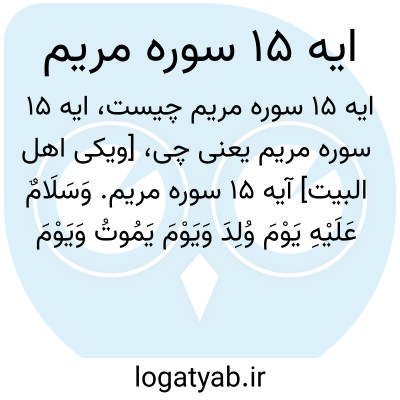 [ویکی اهل البیت] آیه 15 سوره مریم. وَسَلَامٌ عَلَیْهِ یَوْمَ وُلِدَ وَیَوْمَ یَمُوتُ وَیَوْمَ یُبْعَثُ حَیًّا