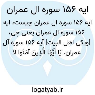 [ویکی اهل البیت] آیه 156 سوره آل عمران. یَا أَیُّهَا الَّذِینَ آمَنُوا لَا تَکُونُوا کَالَّذِینَ کَفَرُوا وَقَالُوا لِإِخْوَانِهِمْ إِذَا ضَرَبُوا فِی الْأَرْضِ أَوْ کَانُوا غُزًّی لَوْ کَانُوا عِنْدَنَا مَا مَاتُوا وَمَا قُتِلُوا لِیَجْعَلَ اللَّهُ ذَٰلِکَ حَسْرَةً فِی قُلُوبِهِمْ ۗ وَاللَّهُ یُحْیِی وَیُمِیتُ ۗ وَاللَّهُ بِمَا تَعْمَلُونَ بَصِیرٌ