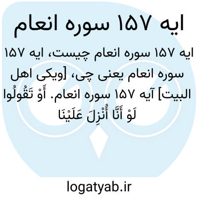 [ویکی اهل البیت] آیه 157 سوره انعام. أَوْ تَقُولُوا لَوْ أَنَّا أُنْزِلَ عَلَیْنَا الْکِتَابُ لَکُنَّا أَهْدَیٰ مِنْهُمْ ۚ فَقَدْ جَاءَکُمْ بَیِّنَةٌ مِنْ رَبِّکُمْ وَهُدًی وَرَحْمَةٌ ۚ فَمَنْ أَظْلَمُ مِمَّنْ کَذَّبَ بِآیَاتِ اللَّهِ وَصَدَفَ عَنْهَا ۗ سَنَجْزِی الَّذِینَ یَصْدِفُونَ عَنْ آیَاتِنَا سُوءَ الْعَذَابِ بِمَا کَانُوا یَصْدِفُونَ