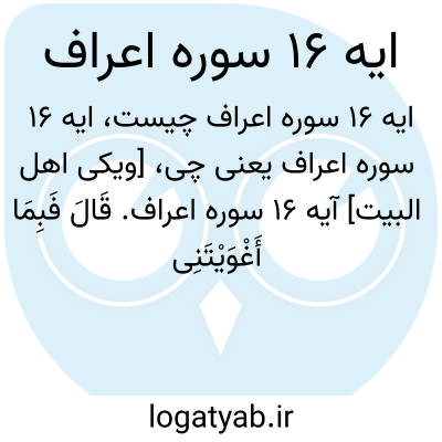 [ویکی اهل البیت] آیه 16 سوره اعراف. قَالَ فَبِمَا أَغْوَیْتَنِی لَأَقْعُدَنَّ لَهُمْ صِرَاطَکَ الْمُسْتَقِیمَ